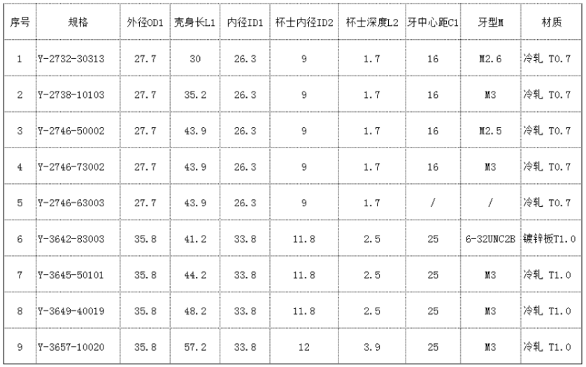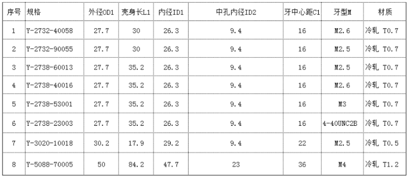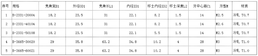 圆形中孔机壳尺寸图表